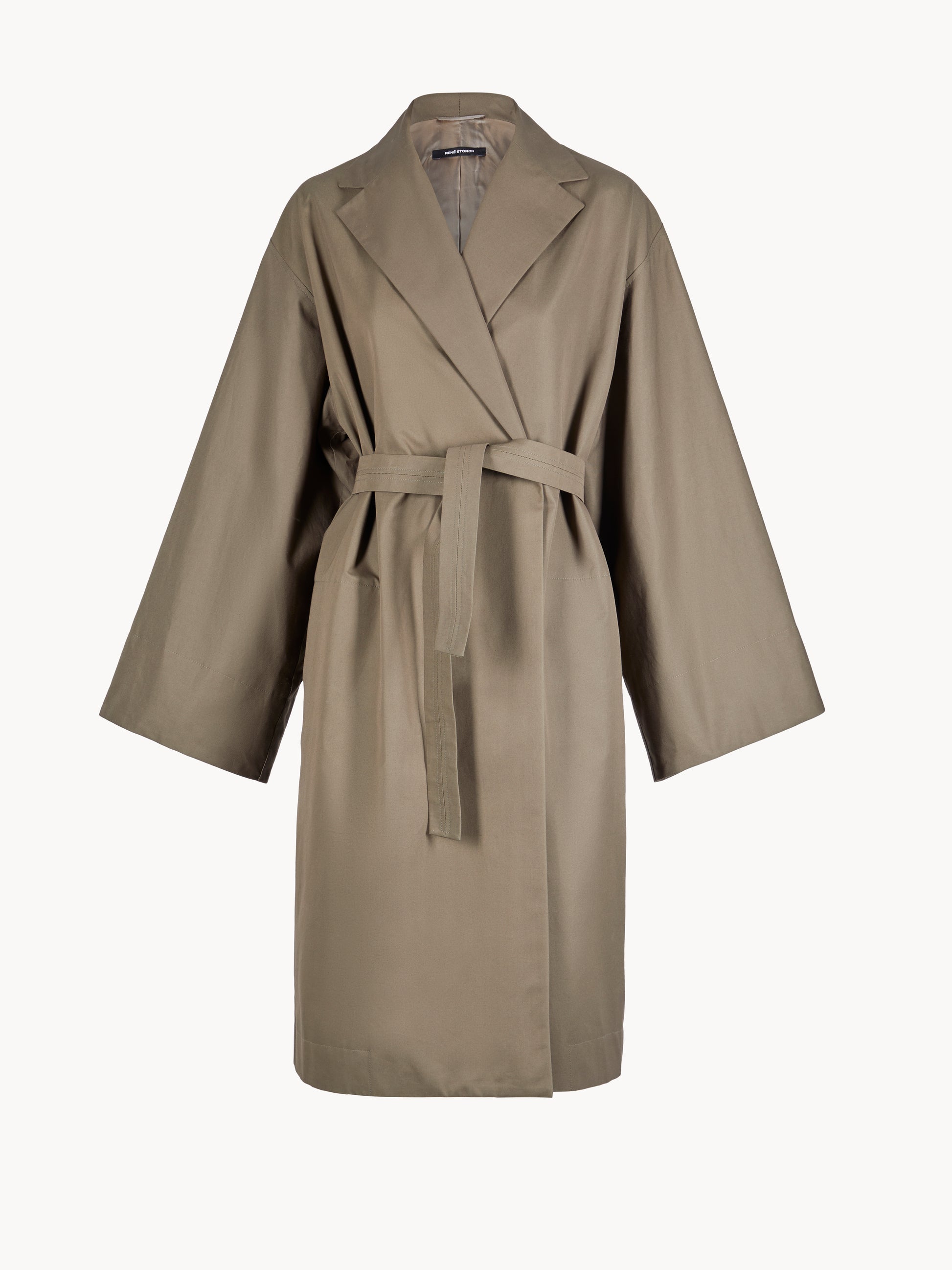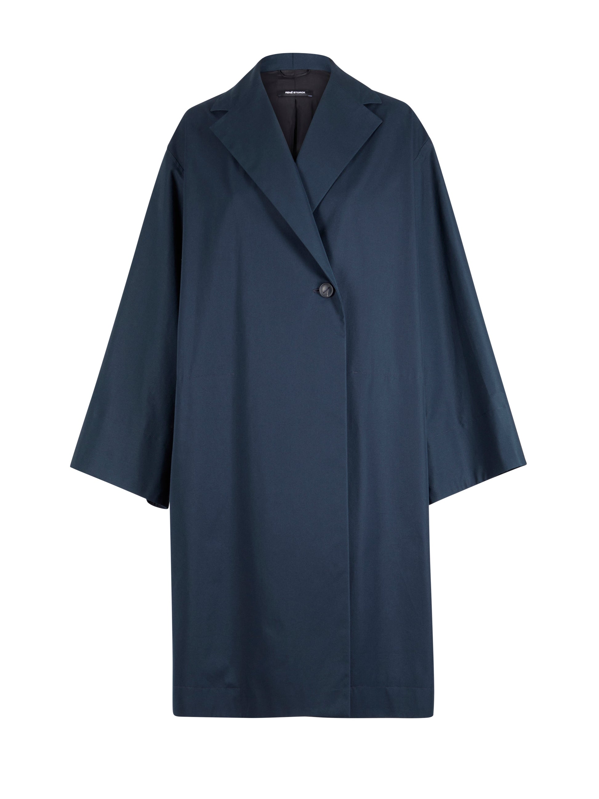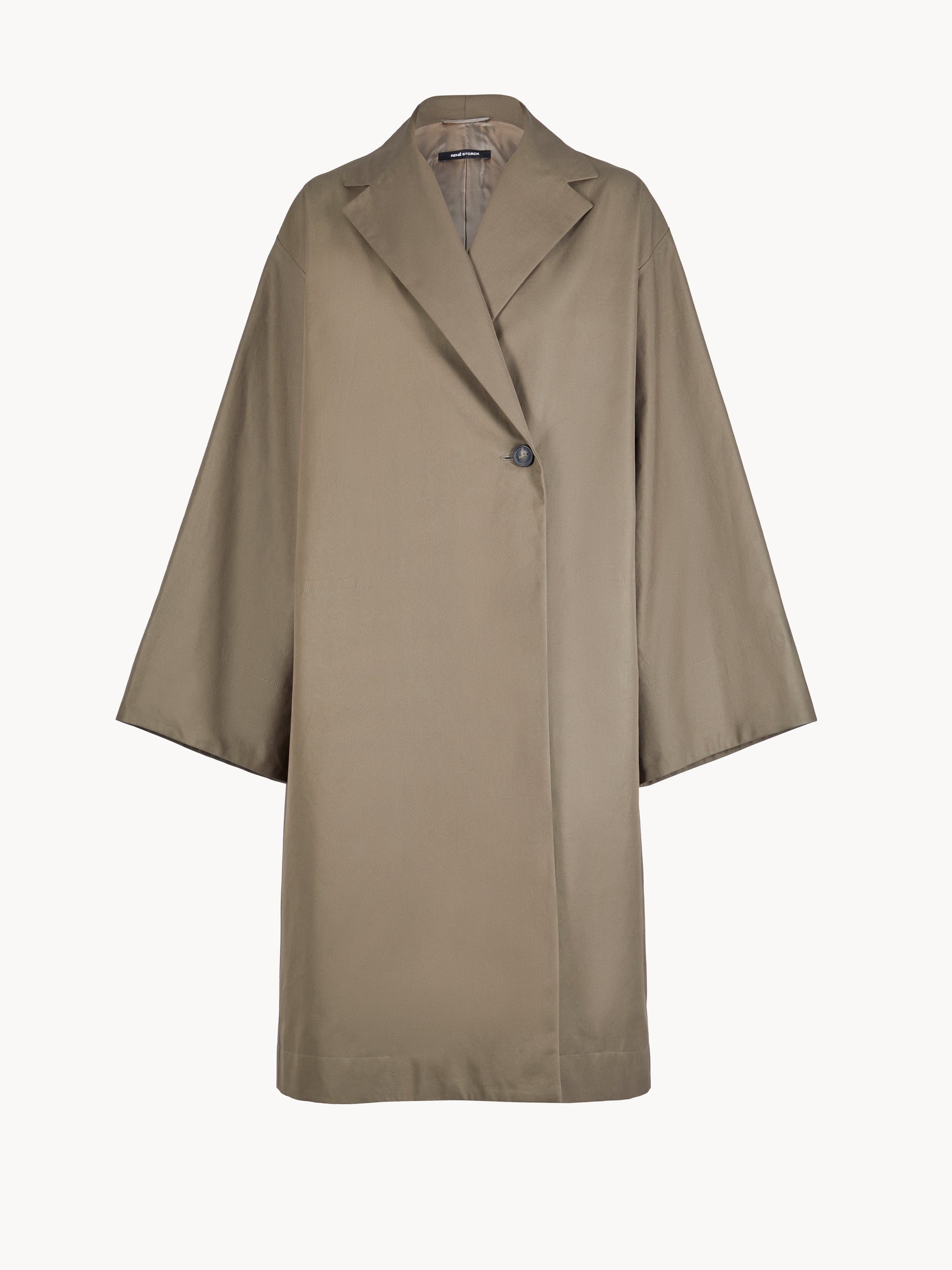 Coat in waterproof sustainable cotton with kimono sleeves and two side seam pockets with a loose, generous fit.