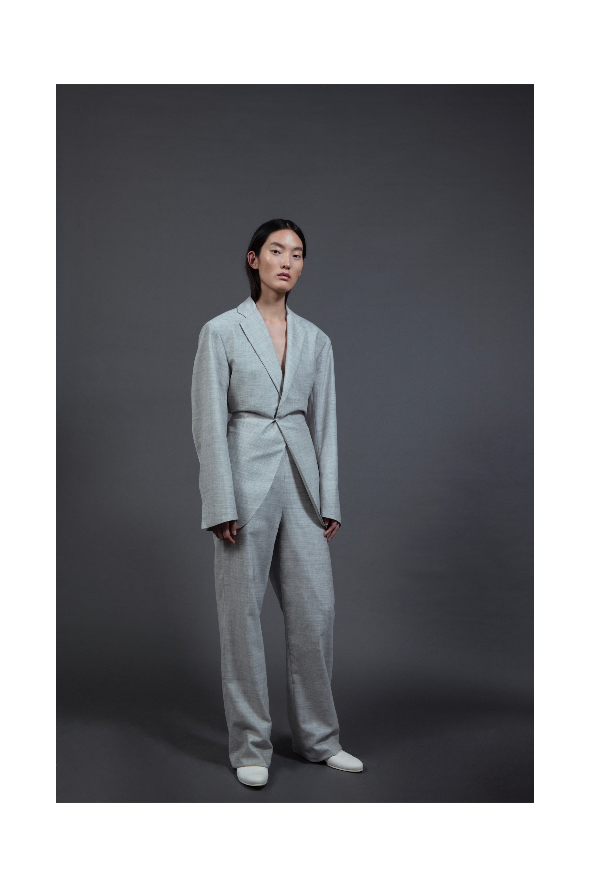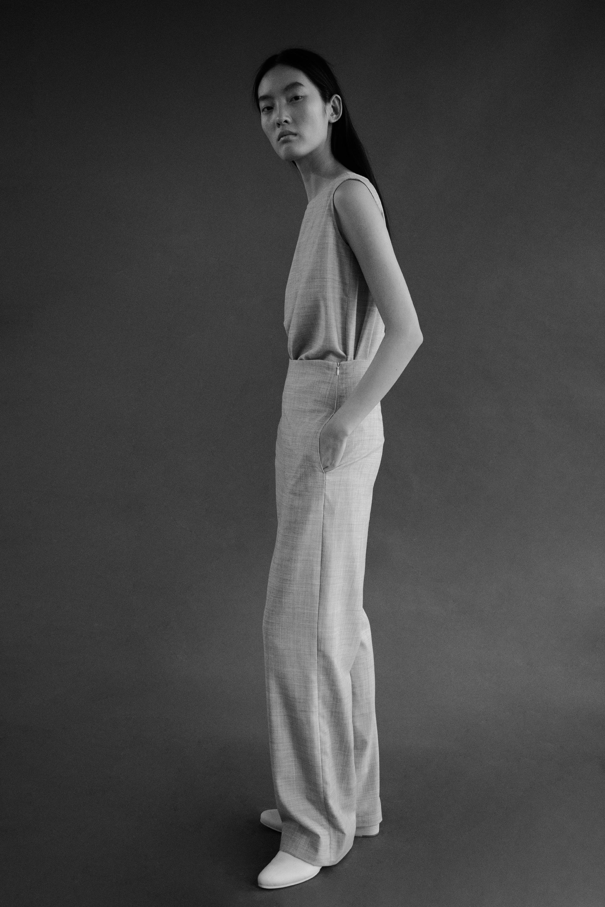 Highwaisted pant in finest wool batiste with plain front, side zipper and side-seam pockets in a tailored fit.